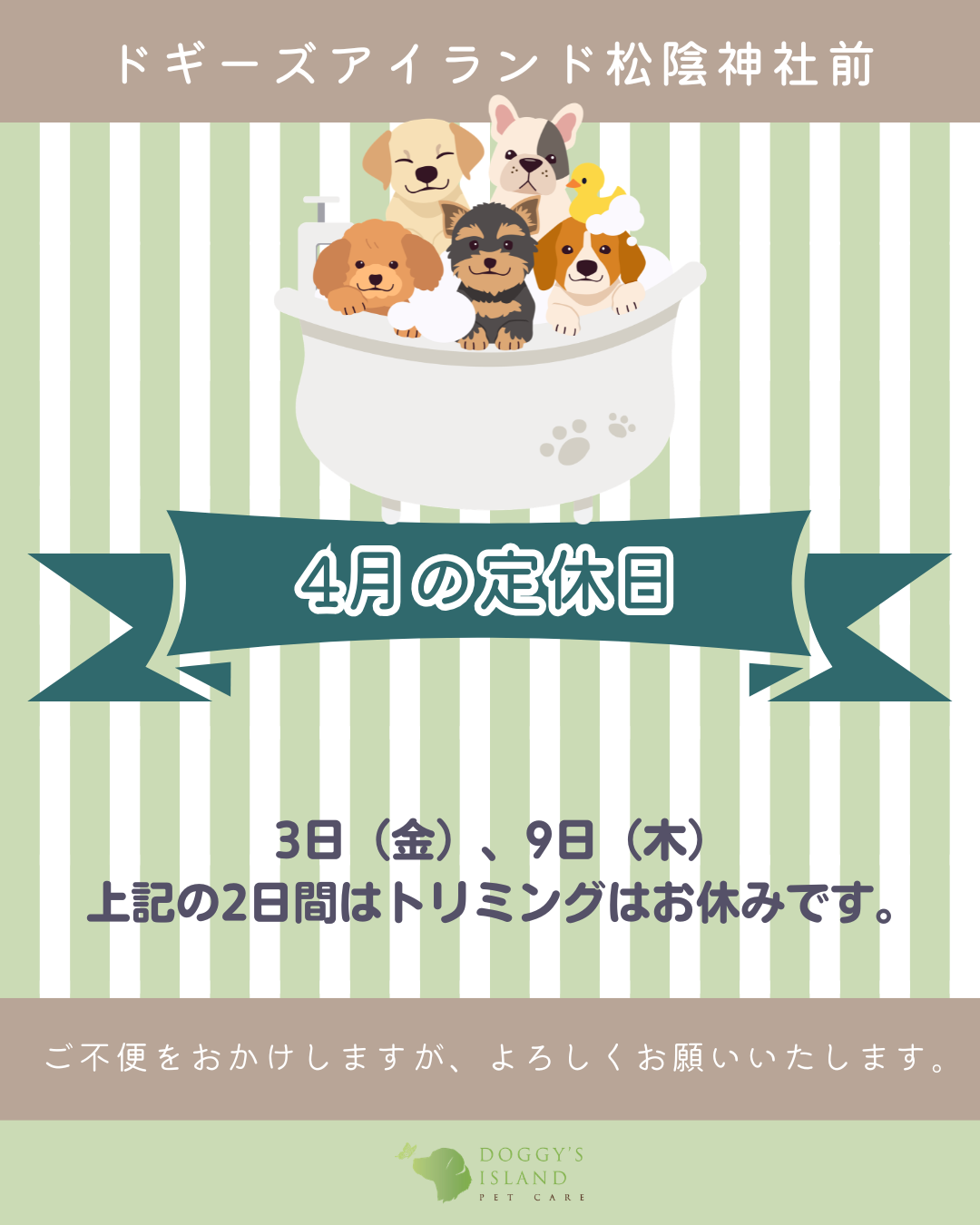 「ドギーズアイランド動物病院松陰神社前」休診日変更のご案内